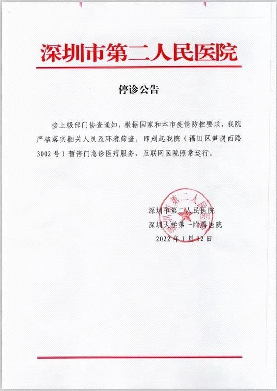 因病例13的活动轨迹涉及深圳市第二人民医院,今天下午15:40分,根据疫情防控应急处置规范要求 ,市二医院配合市区相关部门开展应急处置,落实人员筛查管控、环境样本采样等各项防控措施,暂停门急诊医疗服务 ,互联网医院照常运行 。