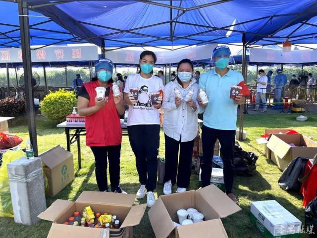 沙湾街各个核酸采样点现场,不时有周边的厂企、商家 、店铺自发送来清凉饮料、能量饮品和冰块“神器”......持续为工作人员消暑降温、加油鼓劲。