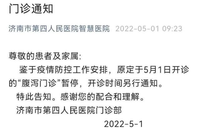 济南这家医院暂停“腹泻门诊 ”开诊业务