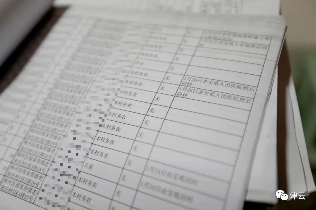 老宋庄村就是一个有着2600余人的大村,该村支部书记兼村主任周志强给记者拿出了一本厚厚的统计表,他说 ,从统计湖北武汉返津人员 、去过宝坻百货大楼、去过确诊病例轨迹地方的、去过宝坻的人员……他们挨家挨户统计了不下四五遍,638户挨个打一遍,很多时候都要打到后半夜 。