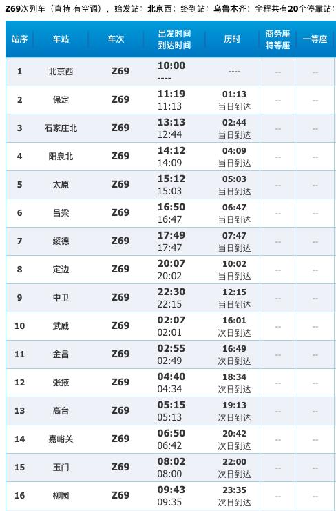 (北京西-乌鲁木齐)