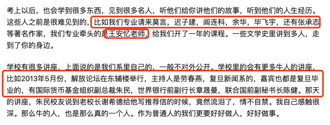知乎上也有人说 ,他在985文学系,上课可以见到莫言、余华 、迟子建......