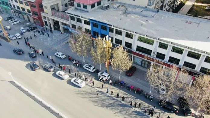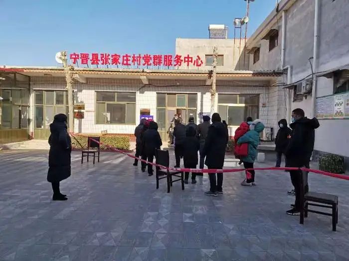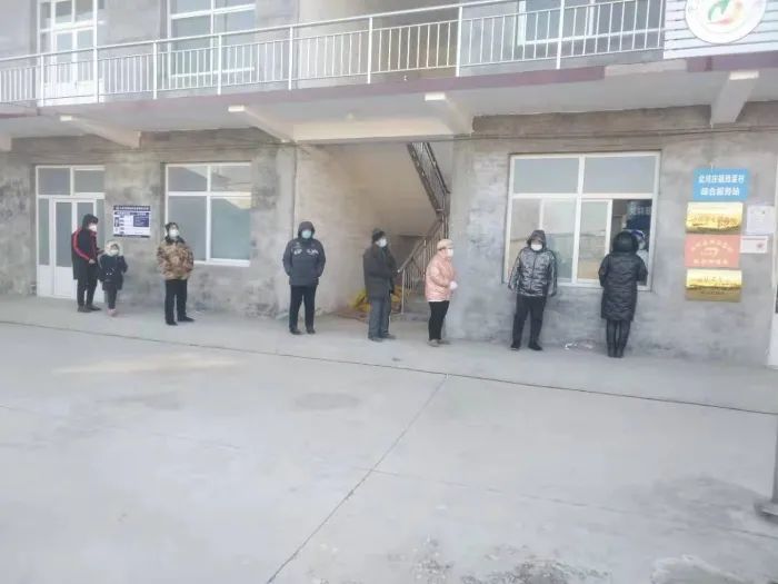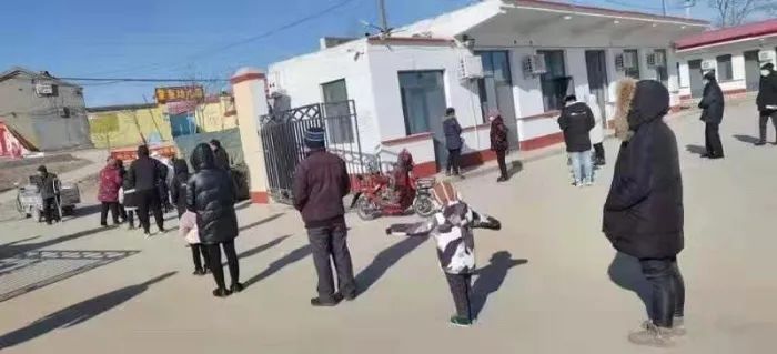 1月7日上午11时,徐家河乡张家庄村村民在乡村干部组织下有序做核酸检测。