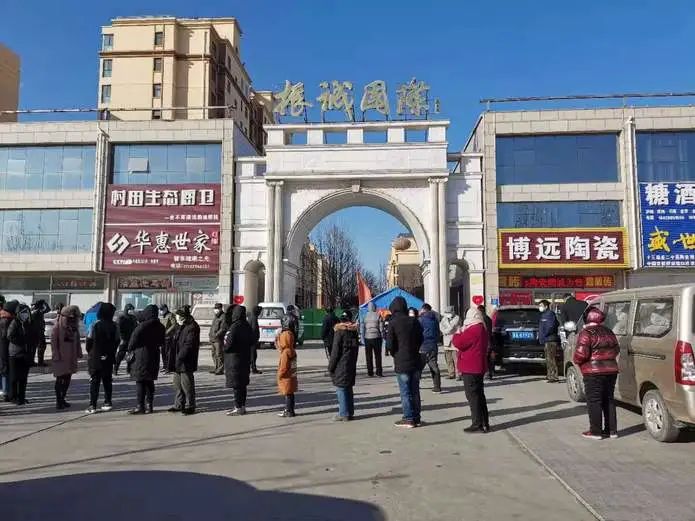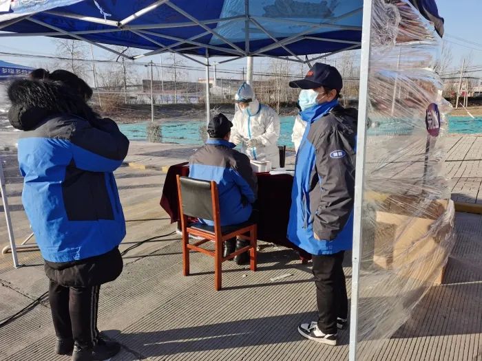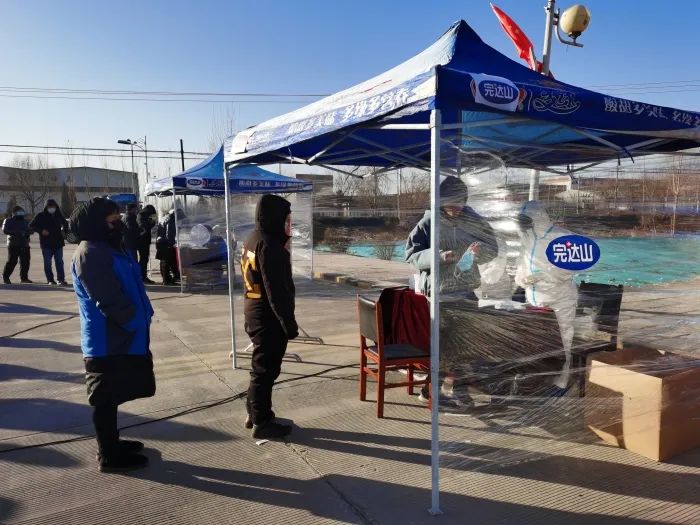 1月7日 ,在凛冽的寒风中,完达山贝乳公司厂区门口员工井然有序排队等候核酸检测 。