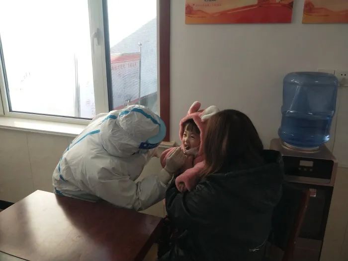 在侯口乡营台村 ,1月6日,来自县妇幼保健院和东汪卫生院的医护人员放弃午餐时间,坚守在寒风中 ,为已经登记的村民进行核酸检测采样。